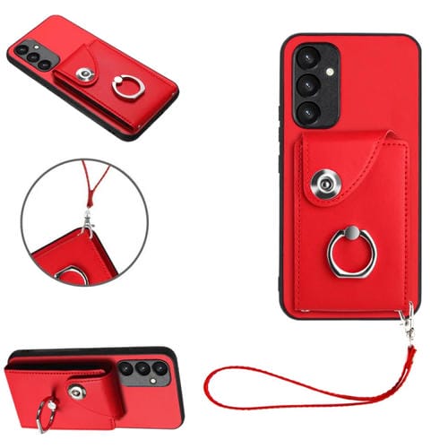 Funda para Teléfono Samsung Galaxy A54 5G de PU con Soporte para Anillo y Bolsa para Tarjeta con Cordón (Rojo)