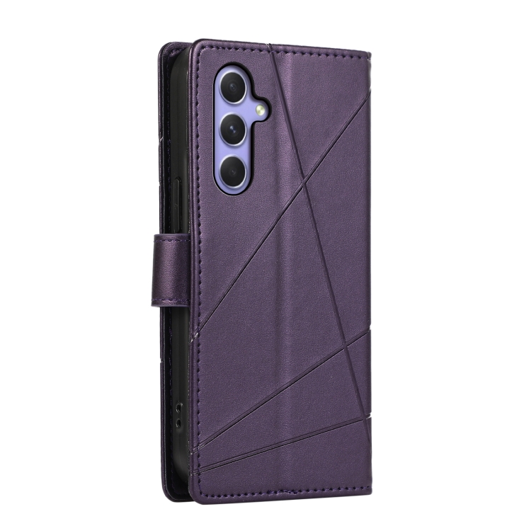 Funda para Teléfono Samsung Galaxy A54 5G PU con Línea en Relieve y Textura de Cuero Genuino (Púrpura)