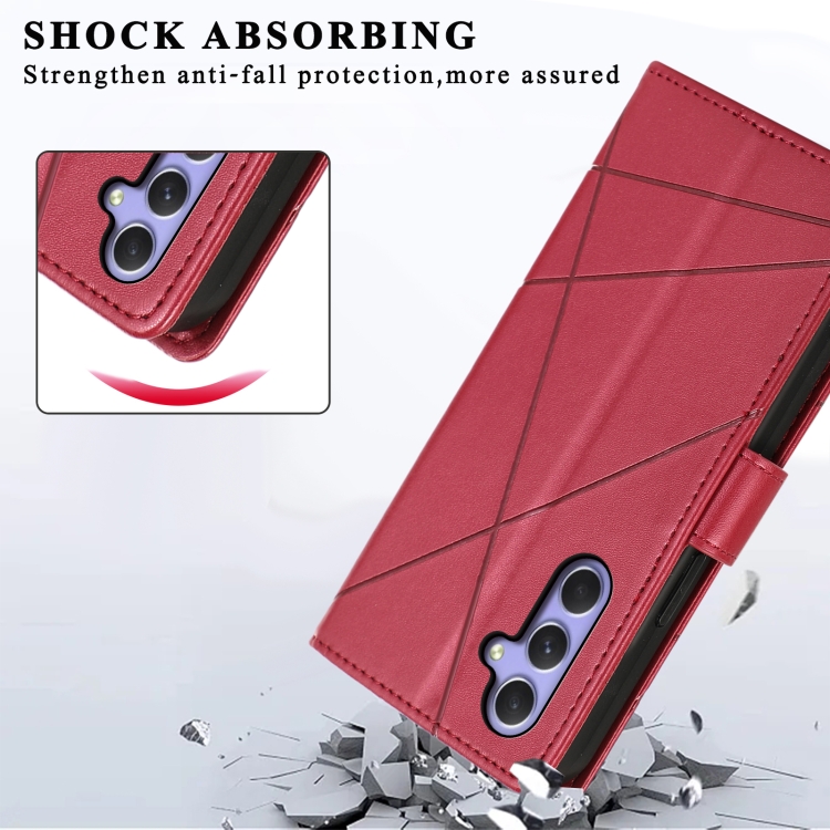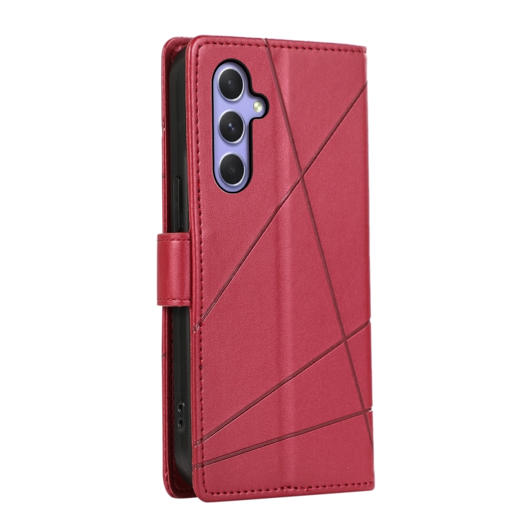 Funda para Teléfono Samsung Galaxy A54 5G PU Cuero Genuino Línea en Relieve (Rojo)
