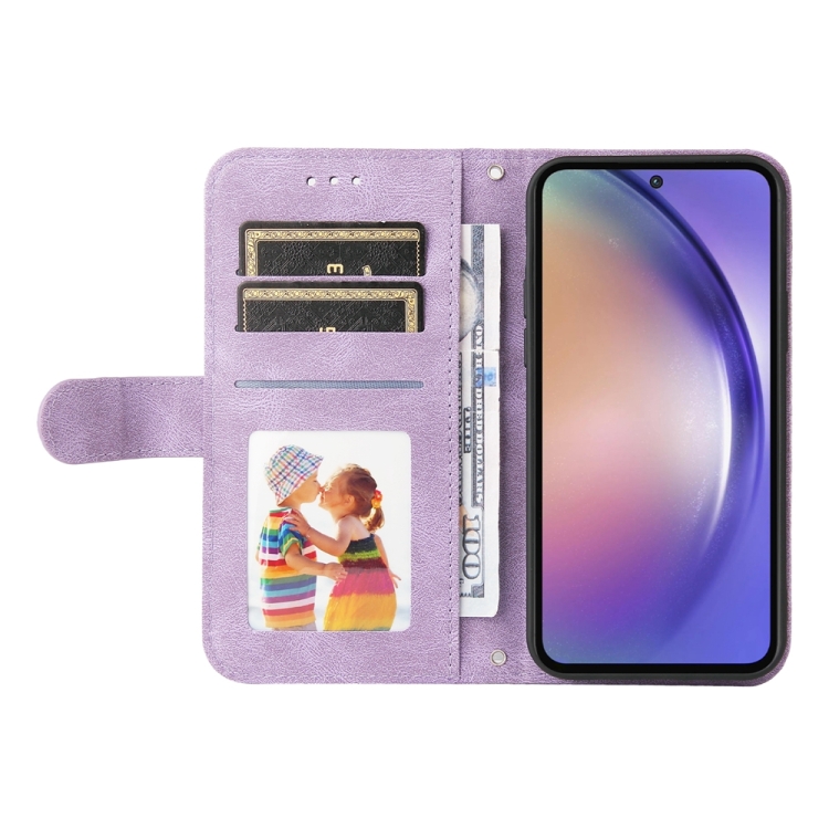Funda de Cuero Samsung Galaxy A55 Skin Feel Life Tree con Botón de Metal (Púrpura)