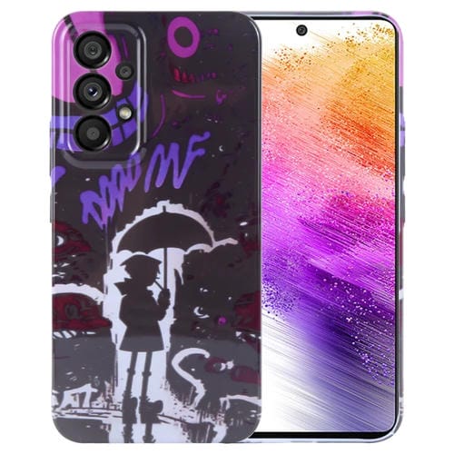 Funda para Teléfono Samsung Galaxy A73 5G con Orificio Preciso PC Patrón Pintado (Paraguas Negro y Morado)