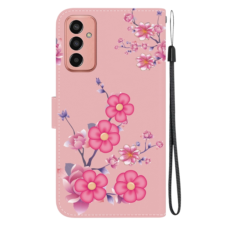 Funda de Cuero Samsung Galaxy M13 4G con Dibujo Coloreado Textura de Cristal (Flores de Cerezo)