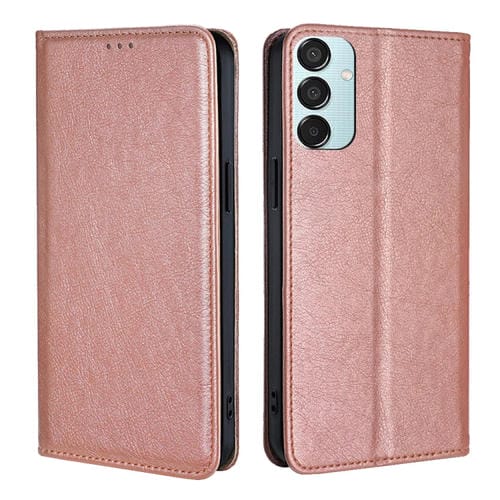 Estuche para Teléfono Samsung Galaxy M15 5G Cuero Magnético Color Sólido con Aceite Brillante (Oro Rosa)