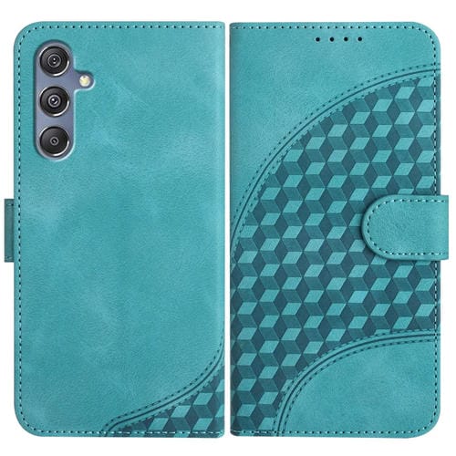 Funda de Cuero Samsung Galaxy M34 Yx0060 con Relieve y Cabeza de Elefante con Cordón (Azul Claro)