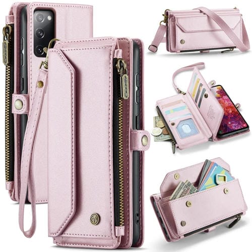 Funda Cartera para Samsung Galaxy S20 FE Caseme C36 Ranuras para Tarjetas Cremallera Cuero Antirrobo (Rosa)