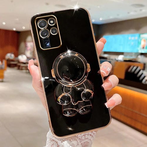 Estuche para Teléfono Samsung Galaxy S20 Ultra Embrace Stars con Soporte Astronauta Galvanizado (Negro)