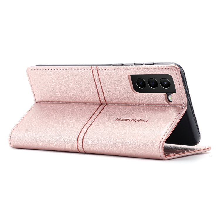 Funda para Samsung Galaxy S21 5G Dream Magnetic Sucion Business Horizontal Flip Pu Cuero con Soporte y Ranura para Tarjeta y Billetera (Oro Rosa)