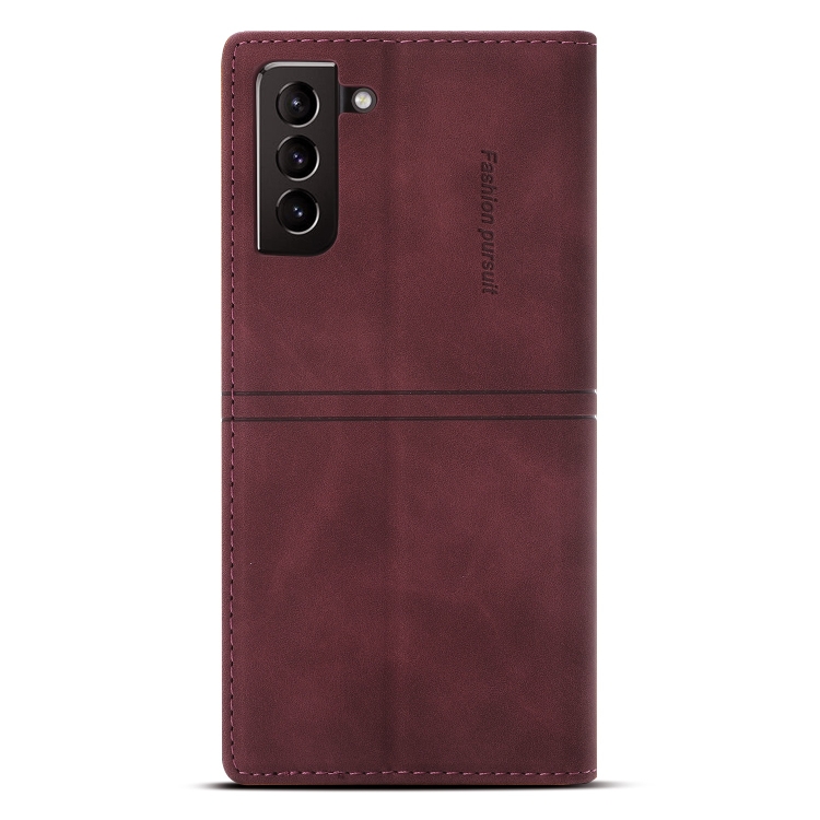 Funda para Samsung Galaxy S21 5G Caja de Cuero PU Horizontal Flip con Soporte y Ranura para Tarjeta (Vino Rojo)