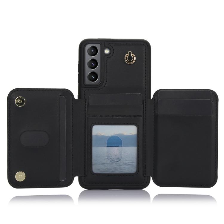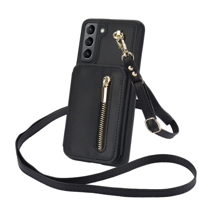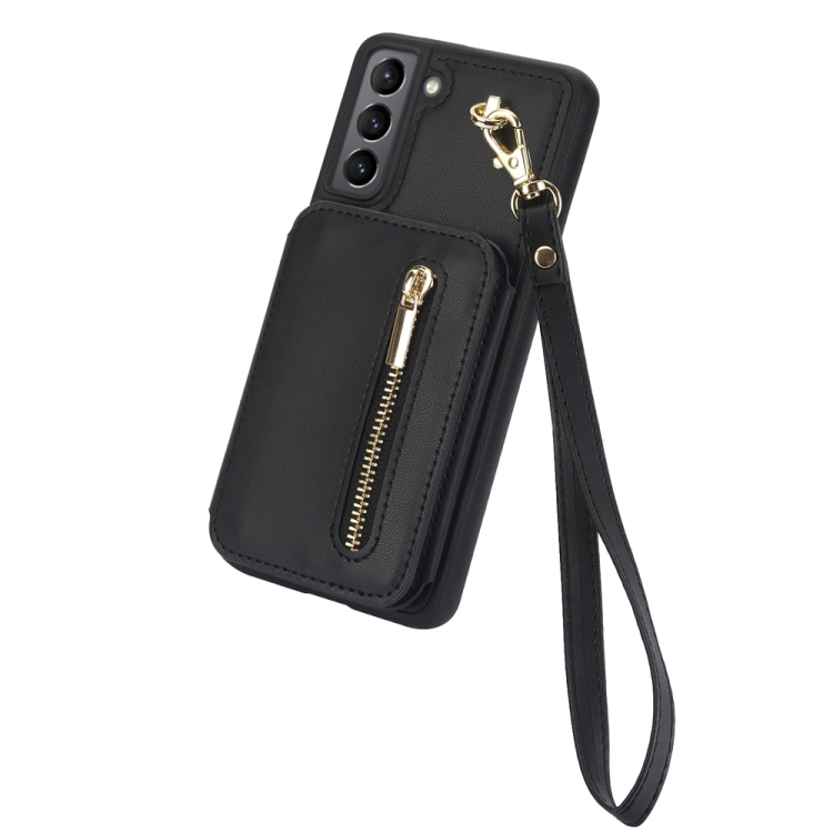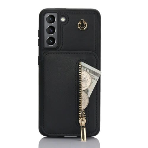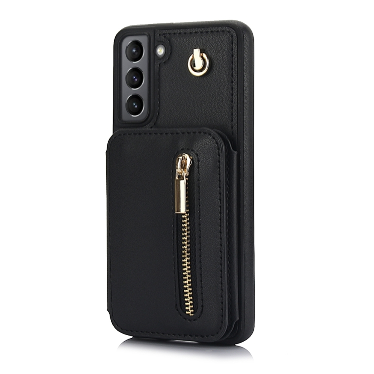 Estuche para Teléfono Samsung Galaxy S21 5G Ym006 con Bolsa para Tarjetas Cremallera y Cordón Doble (Negro)