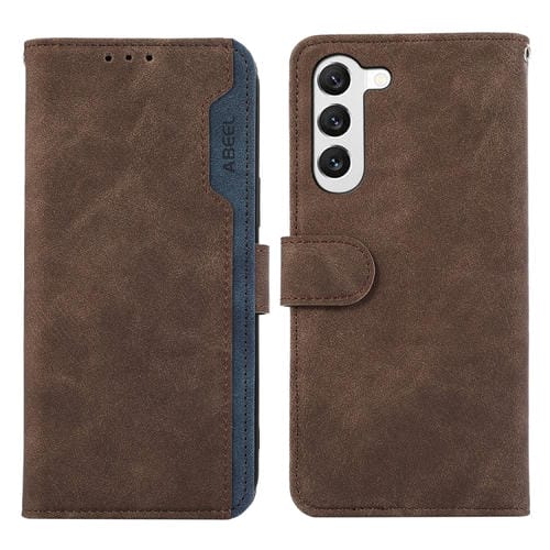 Funda de Cuero Magnética Rfid para Samsung Galaxy S22 + 5G Abeel Color Block (Marrón-Azul)