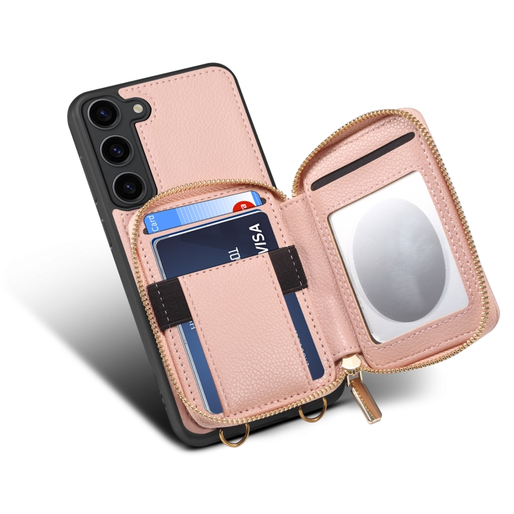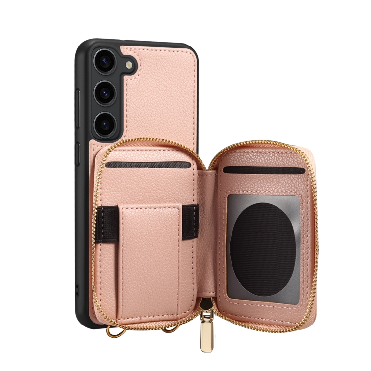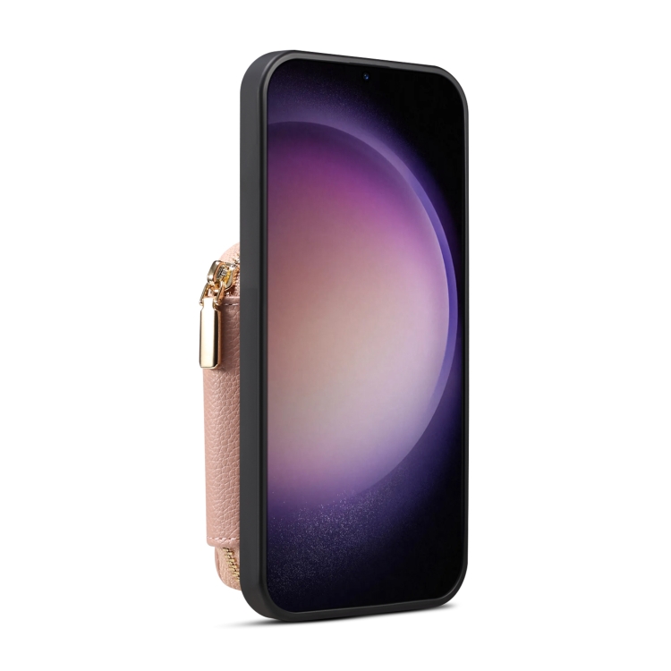 Para Samsung Galaxy S22 5G Estuche para teléfono con ranura para tarjeta con cremallera (rosa)