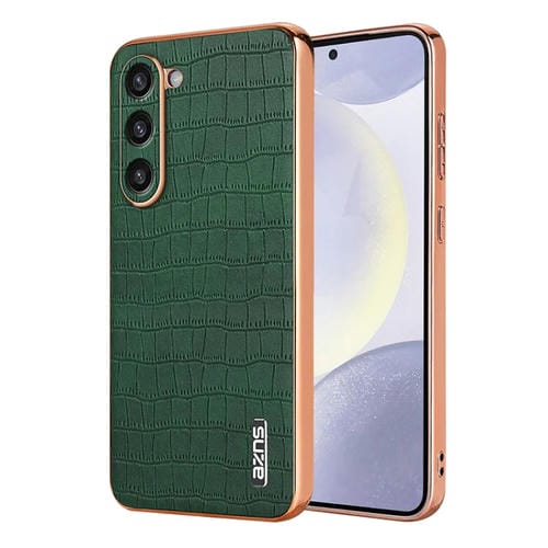 Estuche para Teléfono Samsung Galaxy S23 5G Azns Textura de Cocodrilo Marco Galvanizado (Verde)