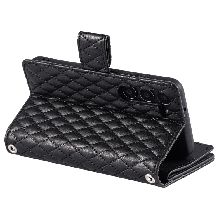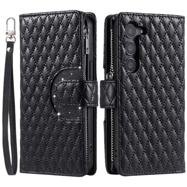 Estuche para Teléfono Samsung Galaxy S23 + 5G Cuero Billetera Cremallera Celosía Purpurina (Negro)