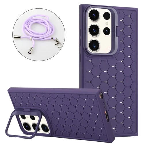 Estuche para Teléfono Samsung Galaxy S24 Ultra 5G Magsafe Soporte Lente Panal con Cordón (Púrpura)