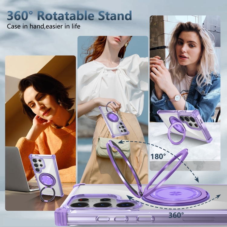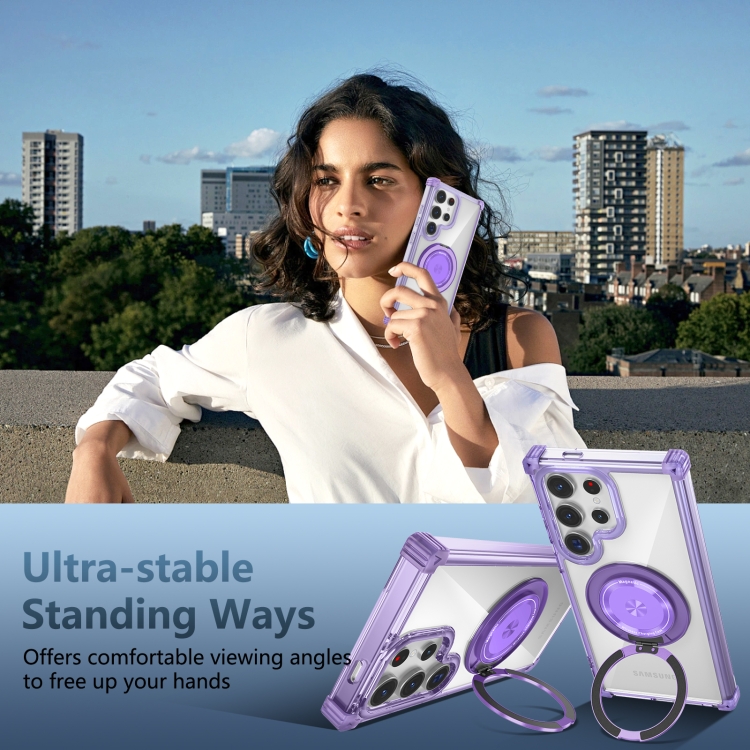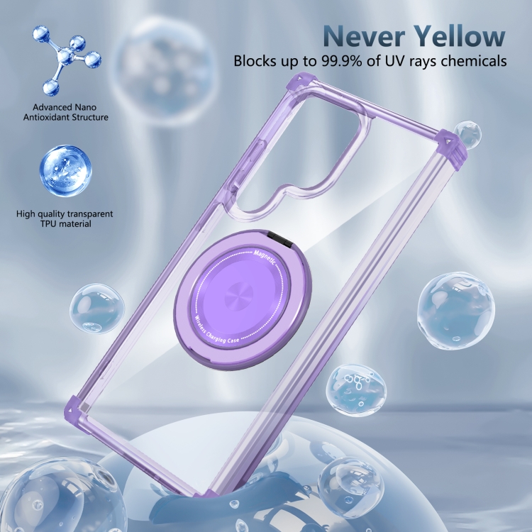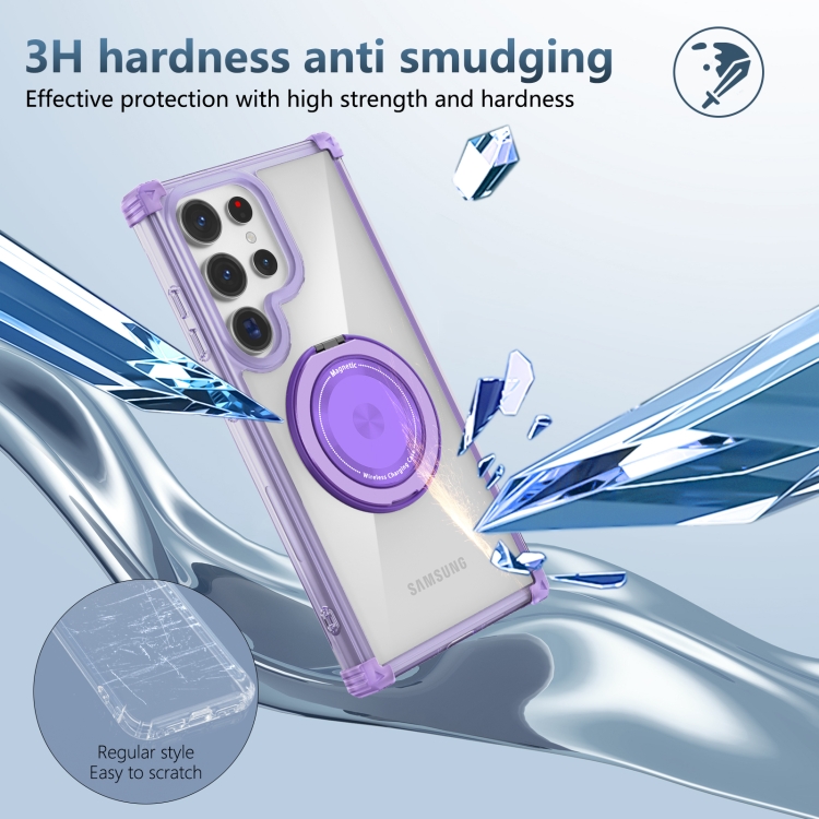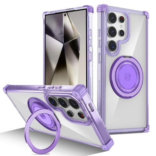 Estuche para Teléfono Samsung Galaxy S24 Ultra 5G Gold Shield Cd Pattern Magsafe Magnético con Soporte Giratorio (Púrpura Transparente)