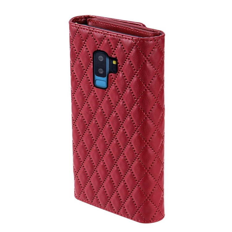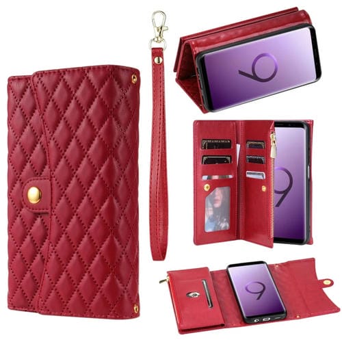 Estuche para Teléfono Samsung Galaxy S9 Cuero Rómbico Billetera MultiTarjeta con Cremallera (Rojo)