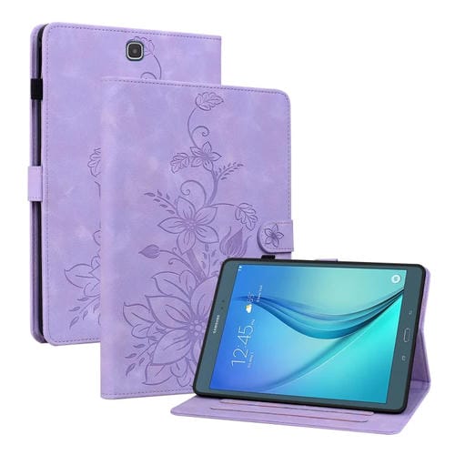 Funda para Tablet Samsung Galaxy Tab A 9.7 T550 T555 Cuero Relieve Lily (Púrpura)