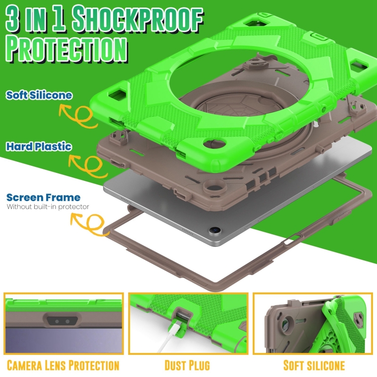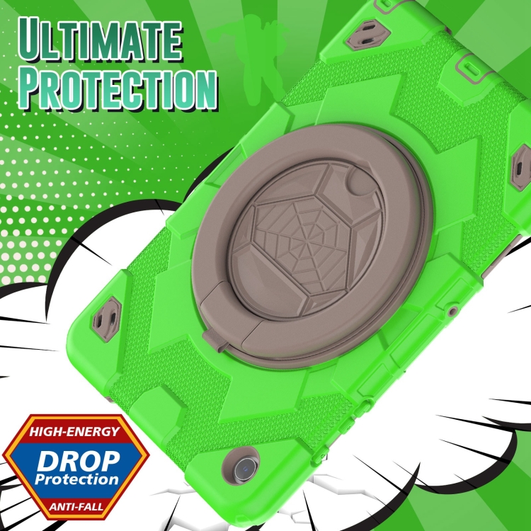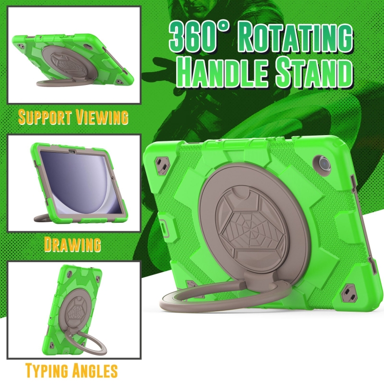 Funda para Tablet Samsung Galaxy Tab A9 + Spider Rotation Handle Híbrida de Silicona para PC (Gris Verde)