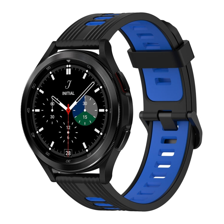 Banda de Reloj de Silicona para Samsung Galaxy Watch 4 Classic 46mm 20mm Patrón Vertical (Negro+Azul)