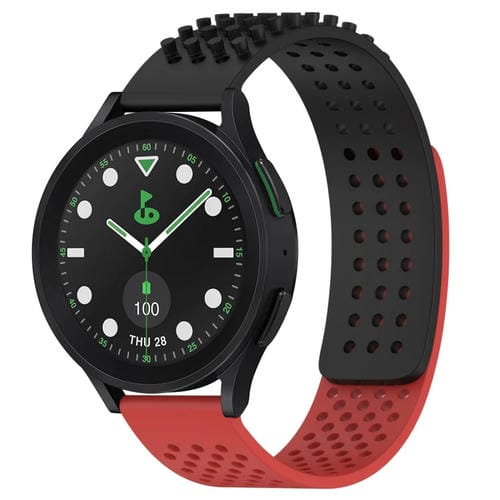 Correa de Silicona para Samsung Galaxy Watch 5 Pro Golf Edition con Puntos 3D Transpirables y Orificios de 20mm (Negro + Rojo)