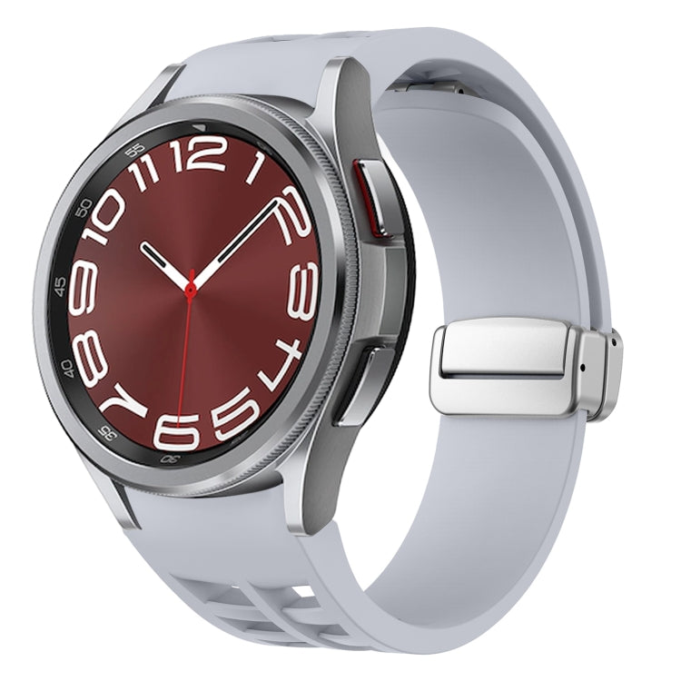 Correa de Silicona para Samsung Galaxy Watch 6 Classic 43/47mm con Hebilla Plegable Magnética (Gris Claro)