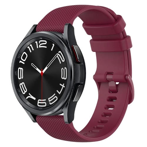 Banda de Reloj de Silicona a Cuadros para Samsung Galaxy Watch 6 Classic 43mm 20mm (Rojo Vino)