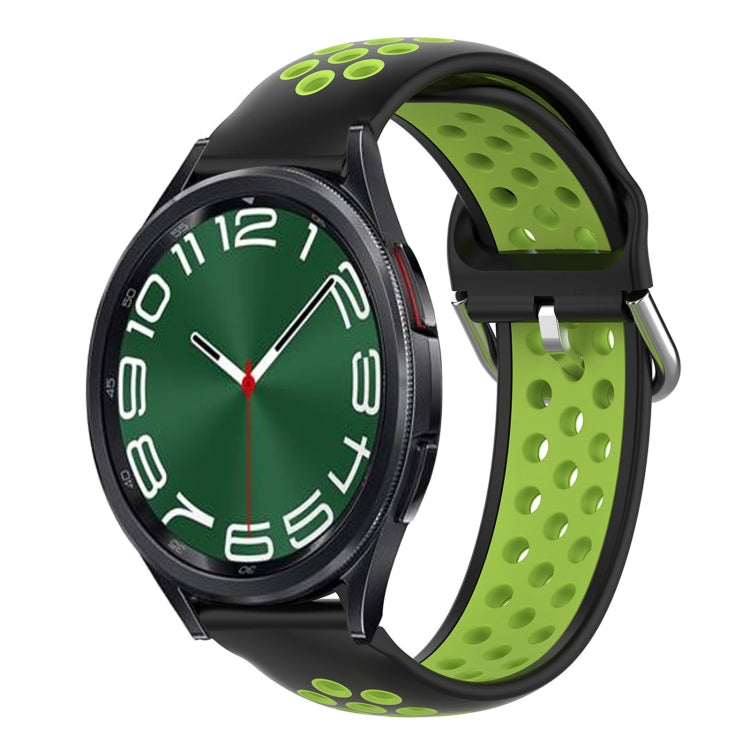 Banda de Reloj de Silicona para Samsung Galaxy Watch 6 Classic 47mm 20mm Deportiva Perforada (Negro + Lima)