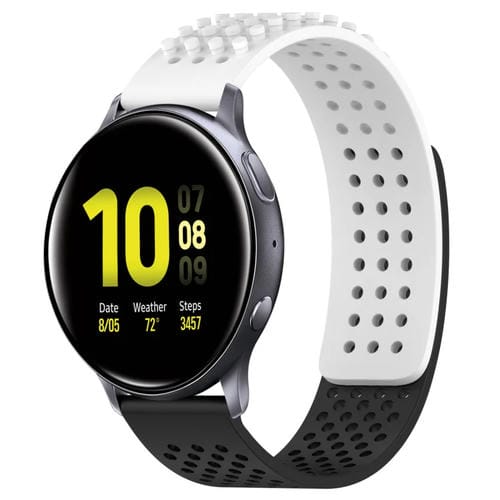 Correa de Silicona para Samsung Galaxy Watch Active 2 44mm 20mm Agujeros Transpirable con Puntos 3D (Blanco + Negro)