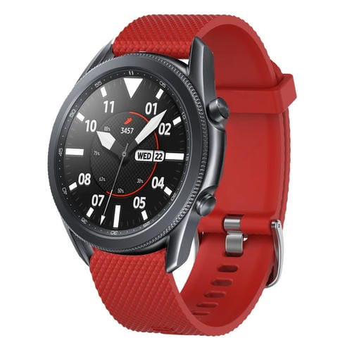 Banda de Reloj de Silicona para Samsung Galaxy Watch3 45mm 22mm con Textura de Diamante (Rojo)