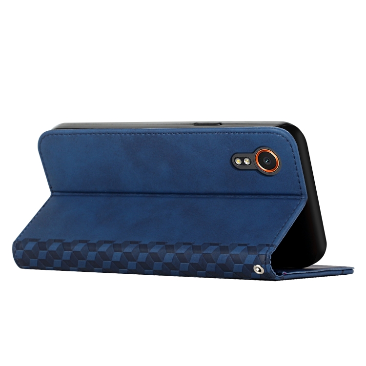 Estuche para Teléfono Samsung Galaxy Xcover 7 Cuero Magnético Sensación de Piel Empalme de Diamantes (Azul)