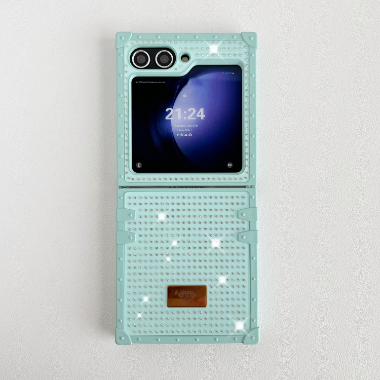 Estuche para teléfono Samsung Galaxy Z Flip3 5G PC a prueba de golpes con diamantes completos y logotipo (Azul)