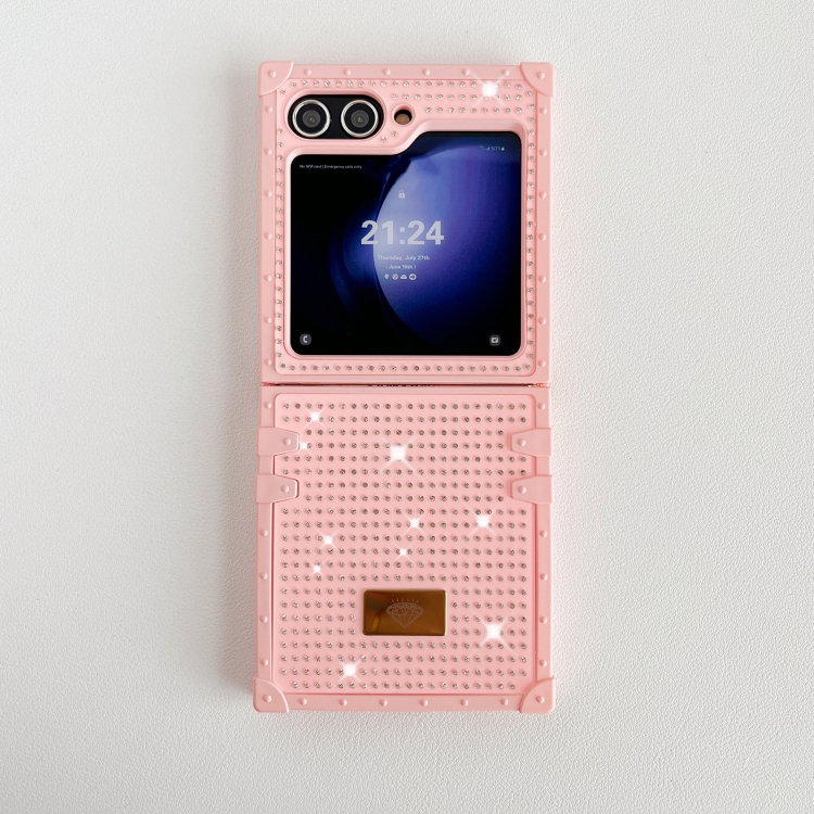 Estuche para Teléfono Samsung Galaxy Z Flip3 5G PC Plegable a Prueba de Golpes con Diamantes Completos y Logotipo (Rosa)