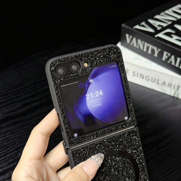 Estuche para teléfono Samsung Galaxy Z Flip3 con Purpurina Magsafe para PC (Negro)