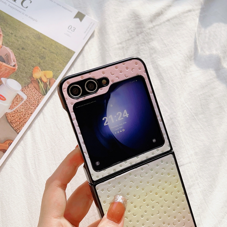 Funda para Teléfono Samsung Galaxy Z Flip5 5G Gradient Stars Moon PC a Prueba de Golpes (Gris)