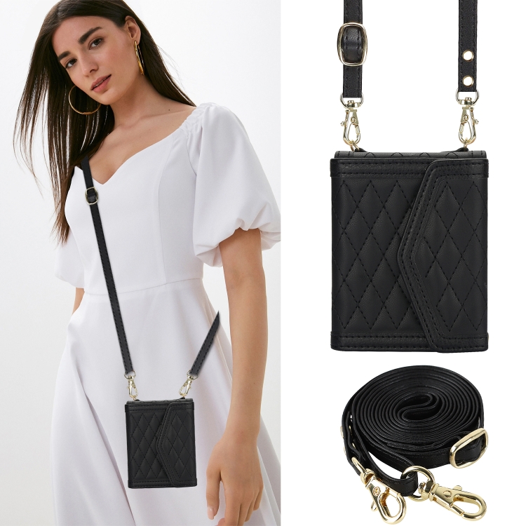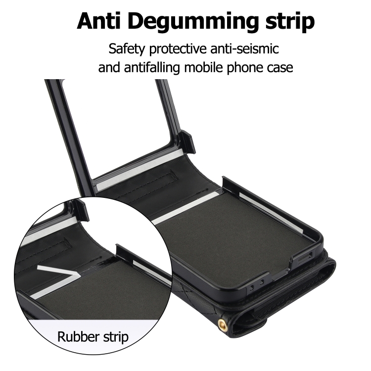 Estuche para Teléfono Samsung Galaxy Z Flip5 Textura Rómbica Empalme Cordón Largo y Corto (Negro)