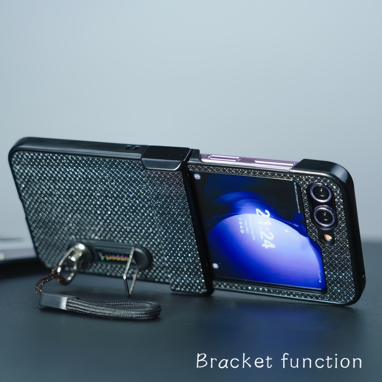 Estuche para teléfono Samsung Galaxy Z Flip5 PC plegado diamante flash tres partes con cordón (Gris)
