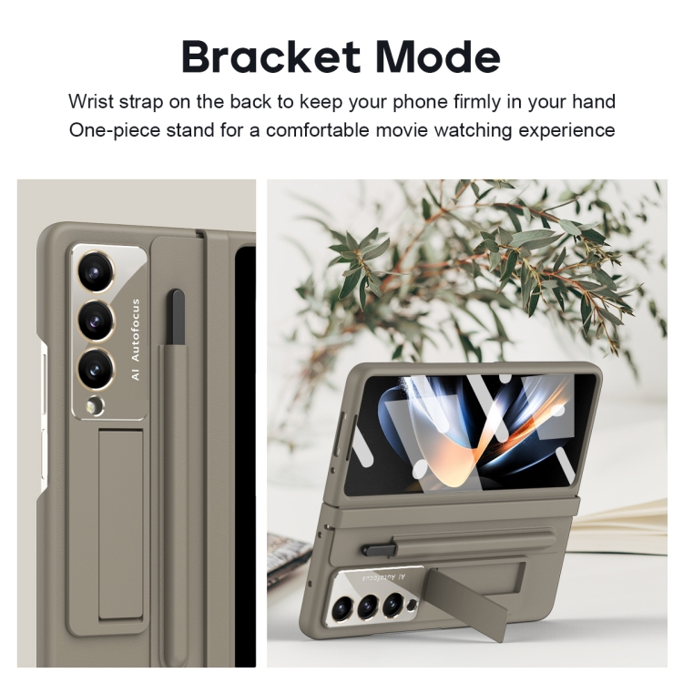 Estuche para Teléfono Samsung Galaxy Z Fold4 Pu + PC Cobertura Total con Ranuras para Bolígrafo (Marrón Claro)