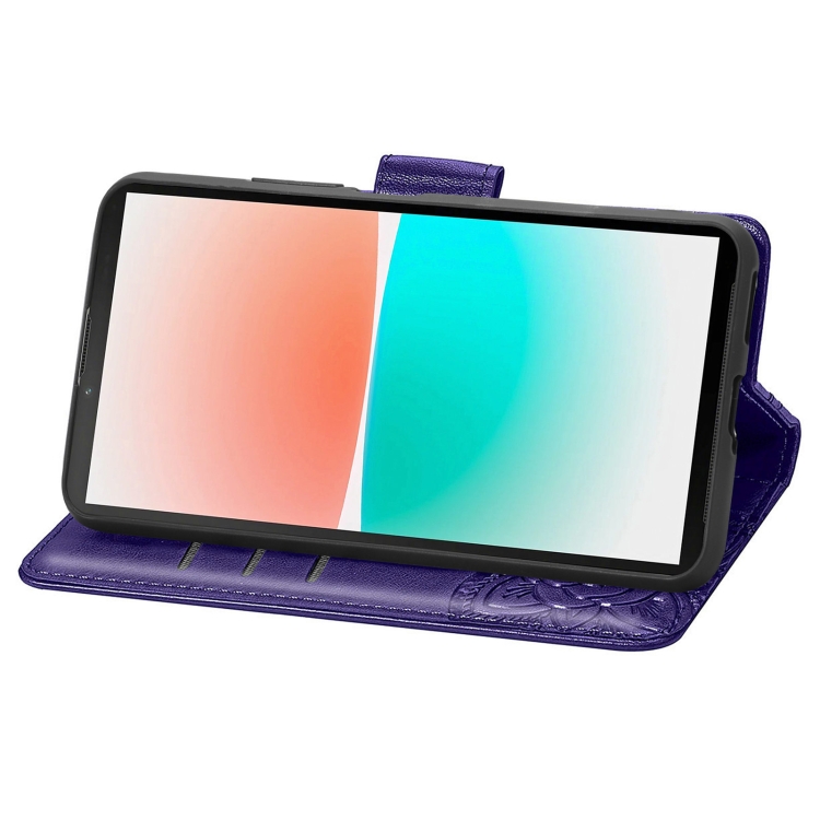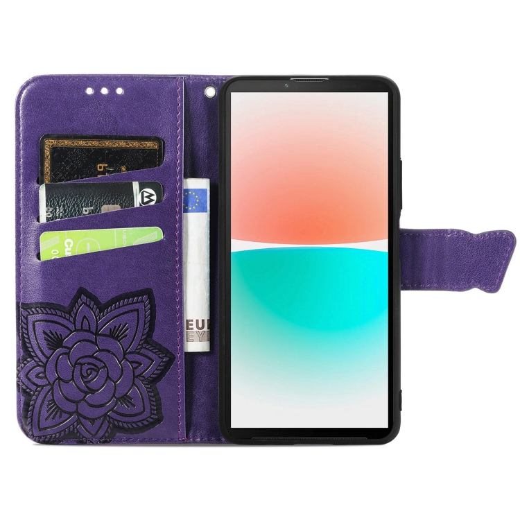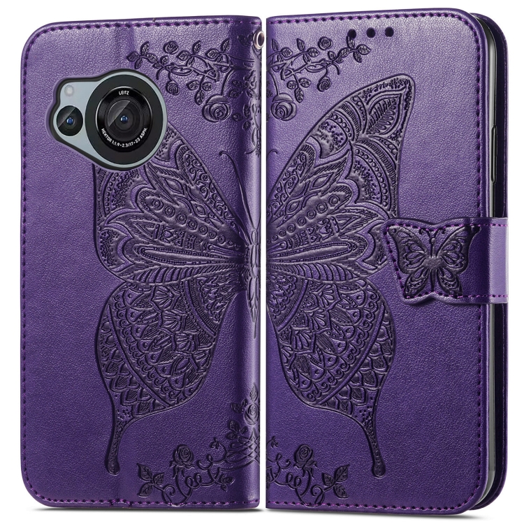 Estuche para Sharp Aquos R8 Butterfly Love Flower Cuero En Relieve (Púrpura)