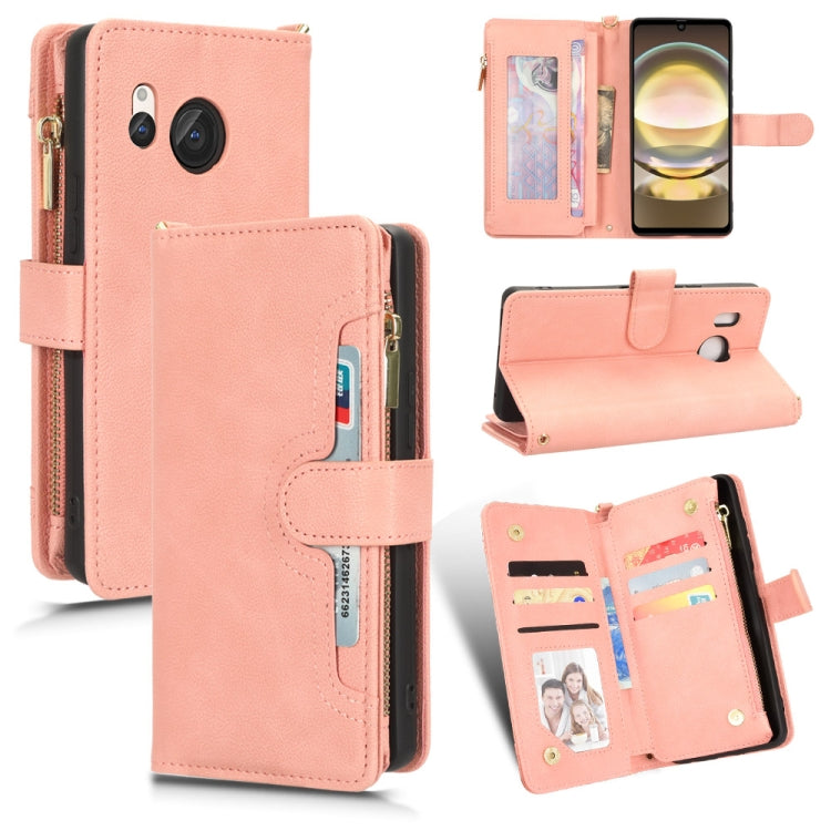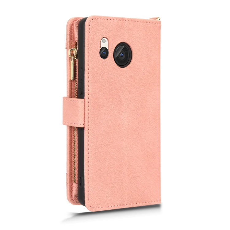 For Sharp Aquos R8 Litchi Texture Leather Zipper Phone Case(Pink)