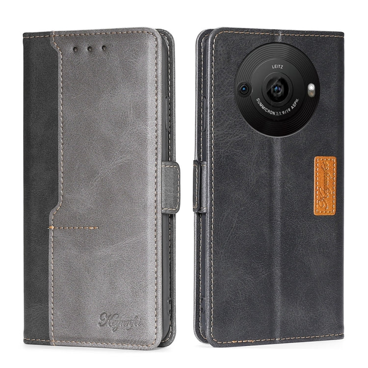 Funda de Cuero para Sharp Aquos R8 Pro Sh-51D con Hebilla Lateral y Color de Contraste (Negro + Gris)