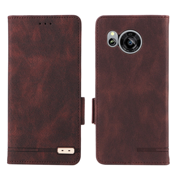 Pour Sharp Aquos Sense 7 Étui de téléphone en cuir à fermeture magnétique (marron)