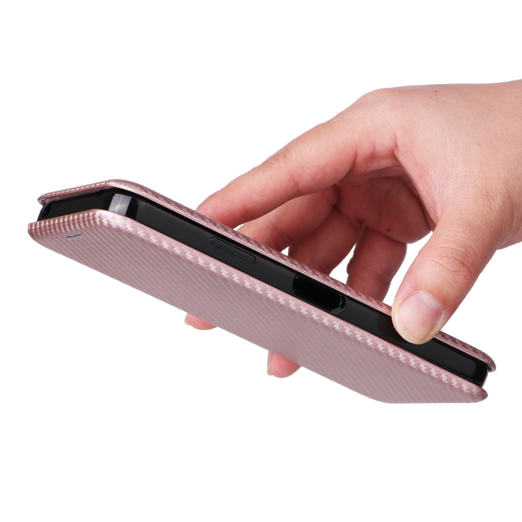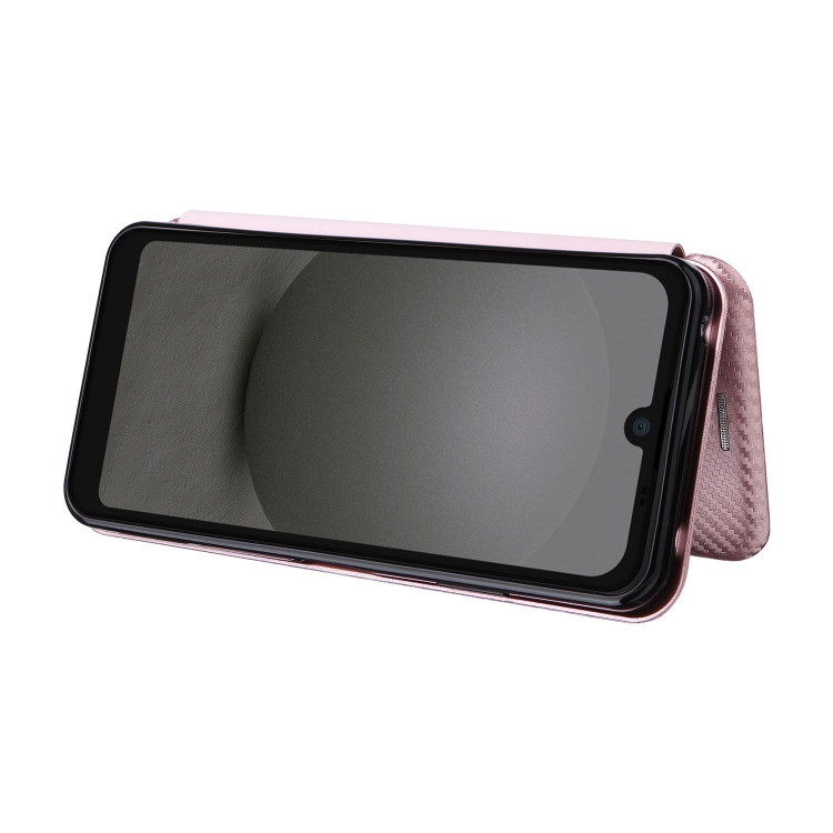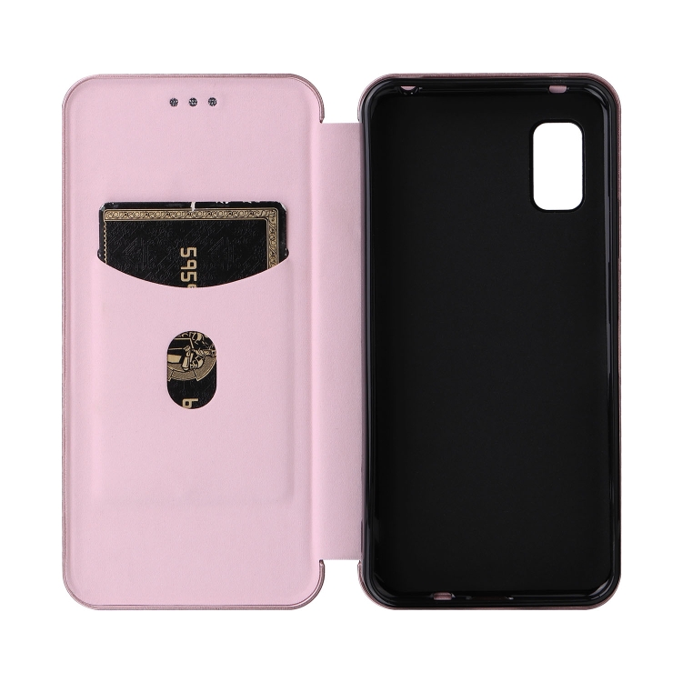Funda para Sharp Aquos Wish 3 de Cuero con Textura de Fibra de Carbono (Rosa)