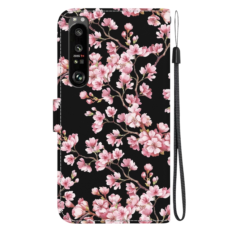 Estuche para Sony Xperia 1 III de Cuero con Dibujo Coloreado y Textura de Cristal (Flor de Ciruelo)