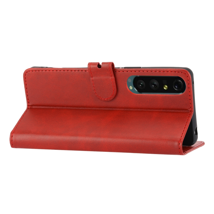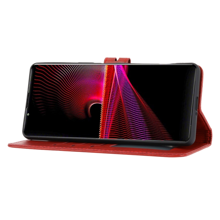Estuche de Cuero para Sony Xperia 1 IV con Patrón de Gato Feliz (Rojo)