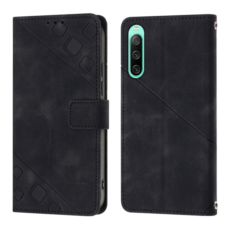Estuche para Sony Xperia 10 V Skin-Feel de Cuero en Relieve (Negro)