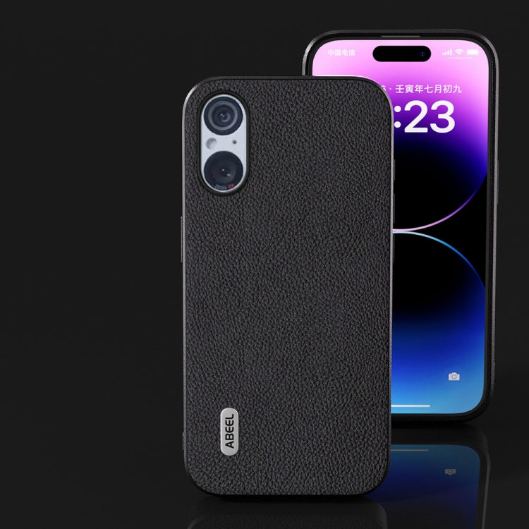 Funda para Sony Xperia 5 V Abeel Cuero Genuino Textura Litchi + PC (Negro)