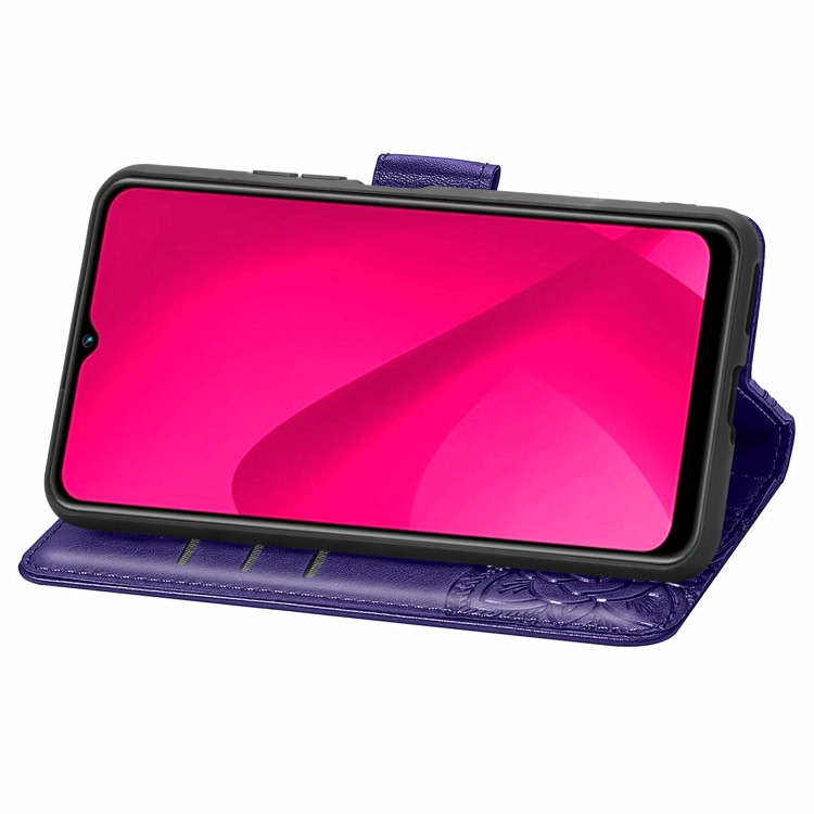 Funda para T-Mobile T Phone 2 5G de Cuero con Relieve Flor de Amor y Mariposa (Púrpura)