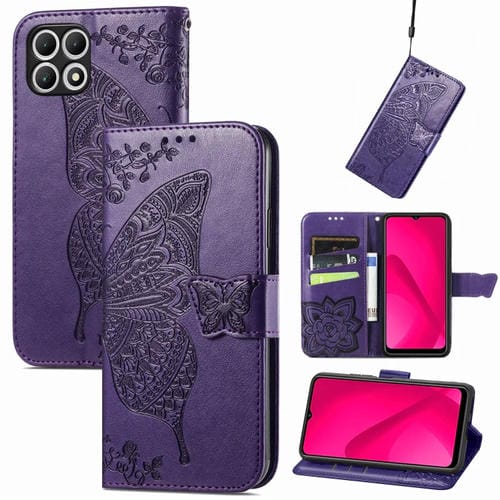 Funda para T-Mobile T Phone 2 Pro 5G Cuero con Relieve Flor y Mariposa (Púrpura)