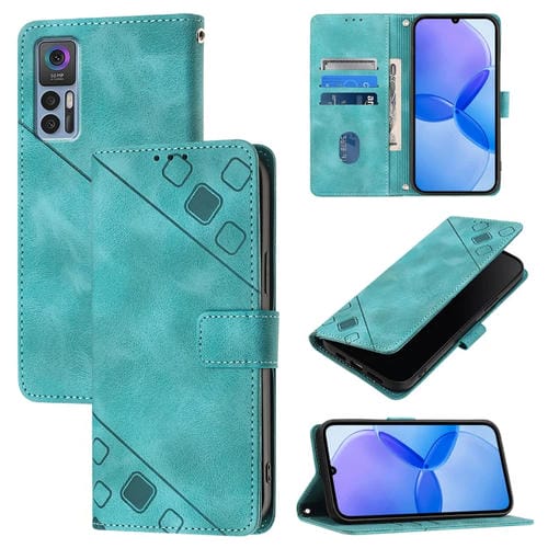 Funda de Cuero para TCL 30 5G Skin Feel en Relieve (Verde)