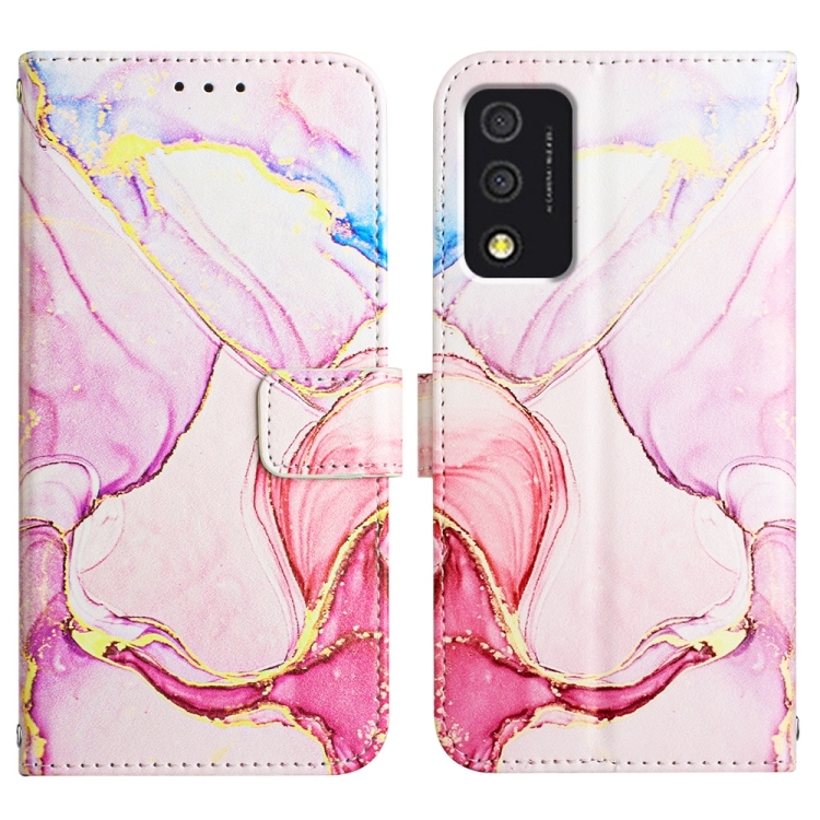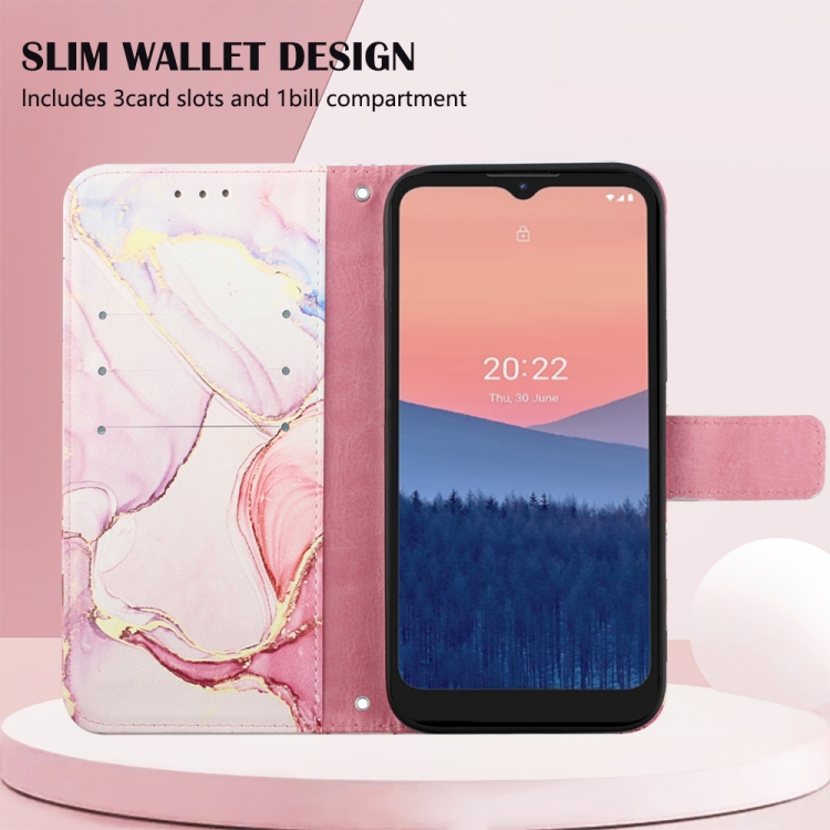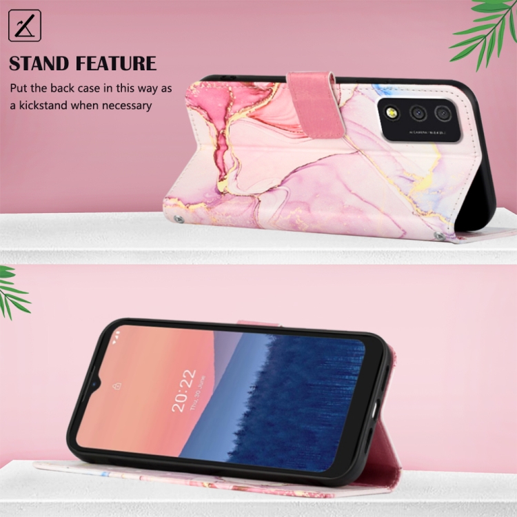 Funda de Teléfono TCL 30T T603Dl Pt003 con Tapa de Cuero y Patrón Mármol (Oro Rosa)